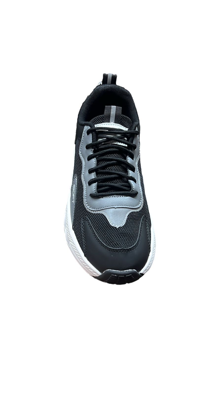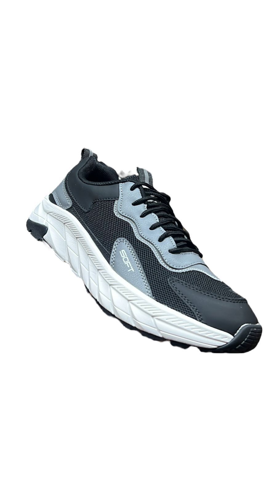 Llevá tu look al siguiente nivel con estas zapatillas deportivas SOFT, diseñadas para ofrecer el máximo confort y estilo. Su diseño moderno en tonos negro y gris combina perfectamente con cualquier outfit, ya sea para entrenar o para uso diario.